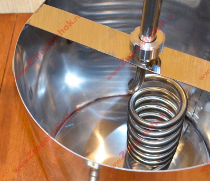 Диаметр змеевика 14 мм позволяет осуществлять быструю перегонку при небольшом расходе воды.